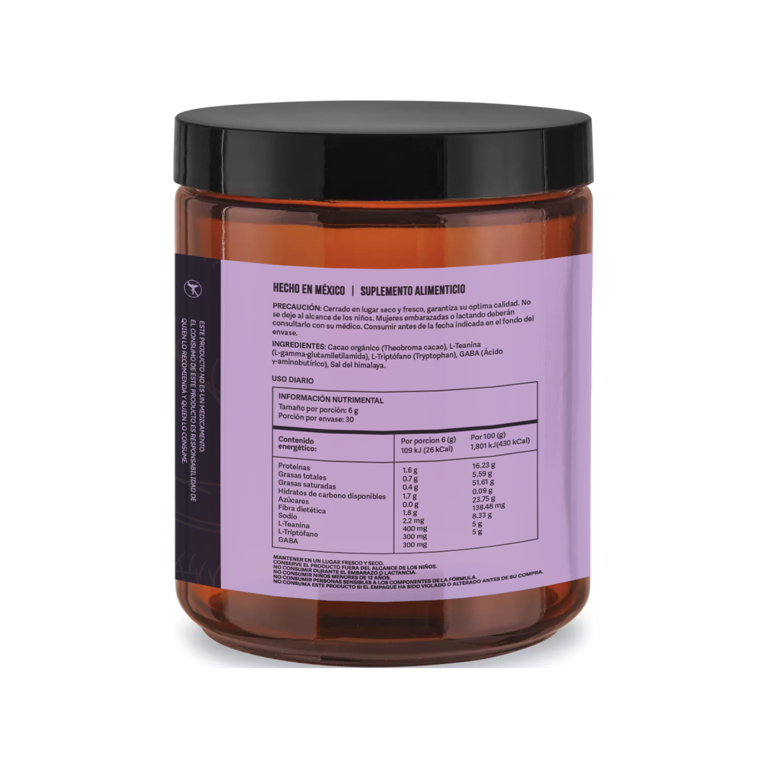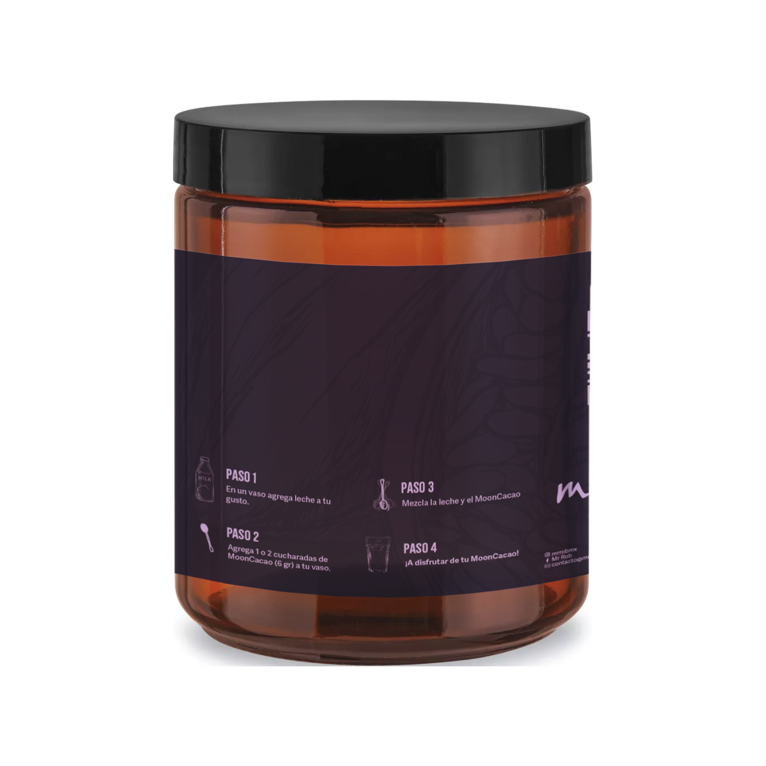 Moon Cacao es una mezcla funcional de cacao orgánico con L-Teanina, L-Triptófano y GABA, creada para acompañarte en esos momentos especiales que dedicas solo para ti.